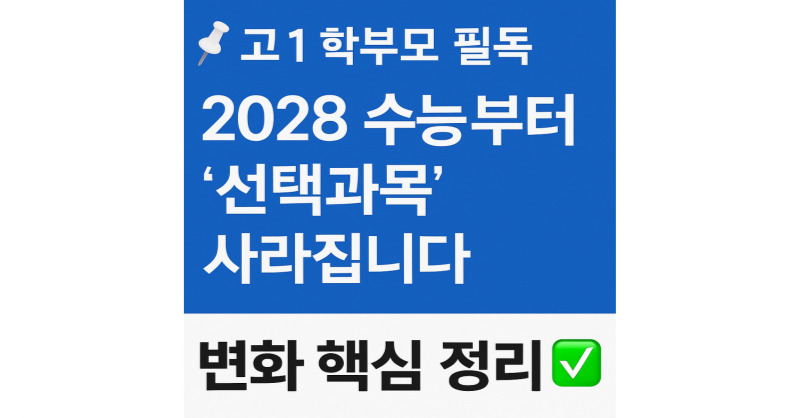 2028학년도 수능은 선택과목이 사라진 '통합형 수능'으로 개편됩니다. 현재 고1 자녀를 둔 학부모님이라면 꼭 알아야 할 수능일정, 과목구성, 평가방식까지 자세히 안내드립니다.