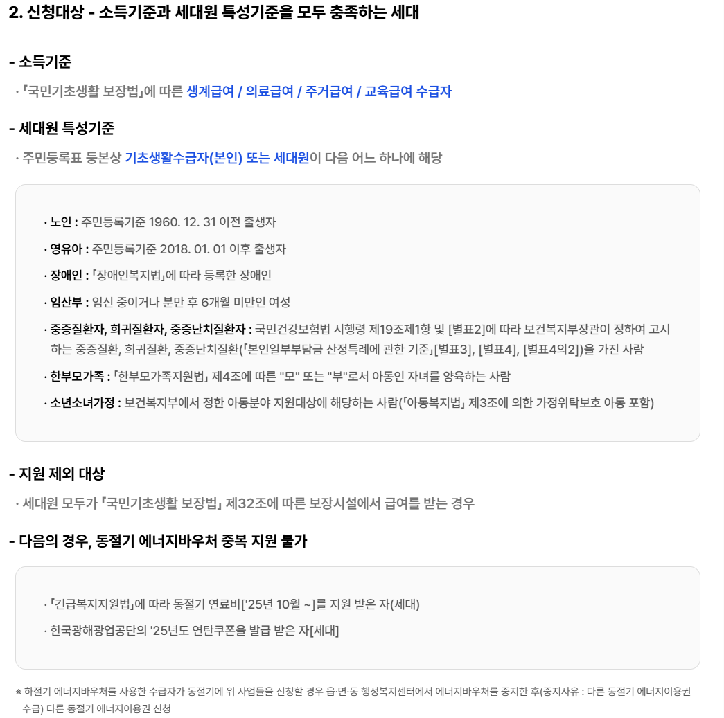 | 동절기 바우처 (난방) | 2025.10.01 ~ 2026.05.25 | 도시가스·난방비 등 |